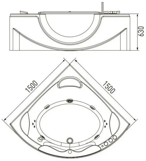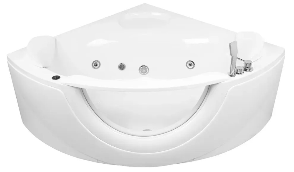 Гидромассажная акриловая угловая ванна Volle 12-88-103 с окошком из оргстекла. Ванна на раме из нержавеющей стали. Толщина акрилового листа марки Lucite - 4мм, тройное армирование. Изделие спроектировано в соответствии с концепцией ТМ Volle: анатомичный дизайн, плавные формы и отсутствие острых углов - всё это обеспечивает эффективную эксплуатацию и облегчает очистку. Использование качественного акрила гарантирует долговременное сохранение первоначальной белизны. • Размеры (ДxШxВ) - 1500x1500x630 мм • Объём – 325 л • Вес - 91 кг • Гидромассаж спины - 4 нерегулируемых форсунки 42 мм • Гидромассаж боковой - 4 большие регулируемые форсунки • Управление – электронное (сенсорное) • В комплект входит: o Ванна на раме в сборе с окошком, поручнем, лицевой панелью o Подголовник пенополеуретан белый (2 шт) o Подводная лампа- LED хромо терапия o Водозаборник для гидромассажной системы o Гидронасос 1 HP (0,75 кВт) o Электронная панель управления o Сифон-автомат с наполнением o Врезной смеситель с душевой лейкой и переключателем