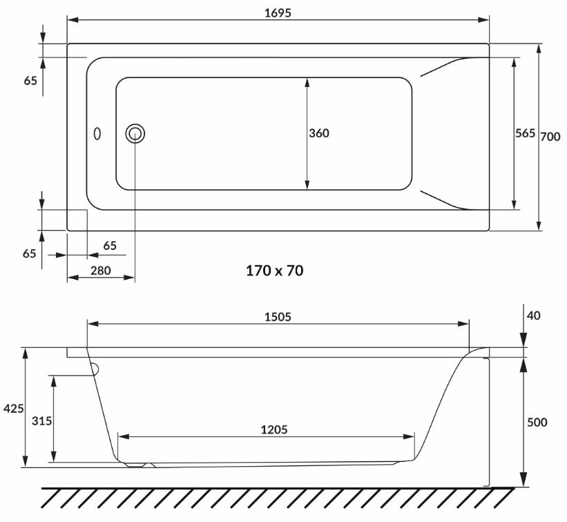 Размеры (ДхШхВ)169.5х70х42.5 см