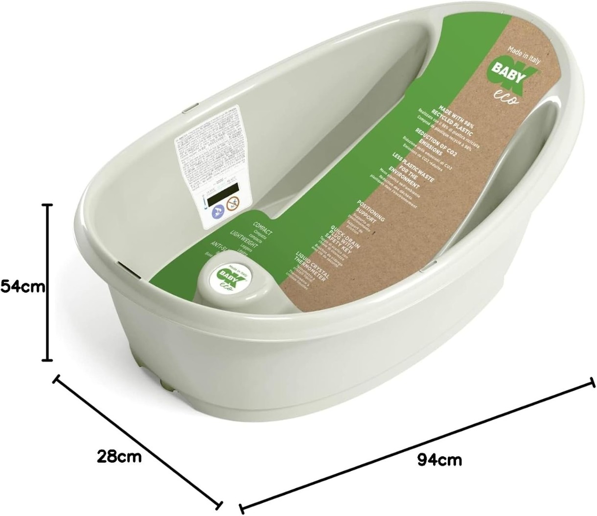 Кроме того, чтобы избежать слишком низкой или слишком высокой температуры для вашего ребенка, в ванну встроен термометр.