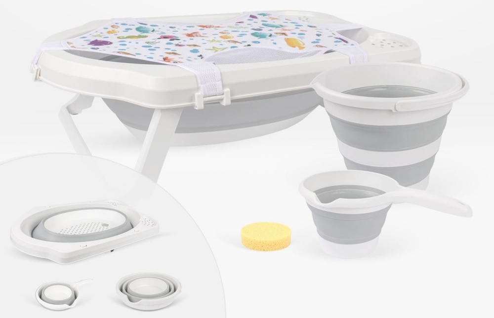 Складной набор для детской ванны из 5 предметов очень прост в использовании благодаря складной конструкции, что сделает купание вашего ребенка комфортным и безопасным. Благодаря складной конструкции он не займет много места в ванной комнате.