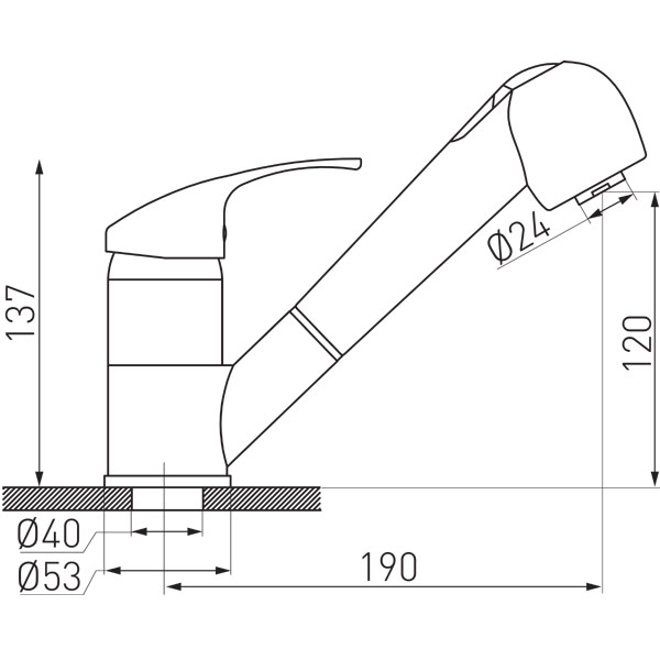 Длина излива190 мм