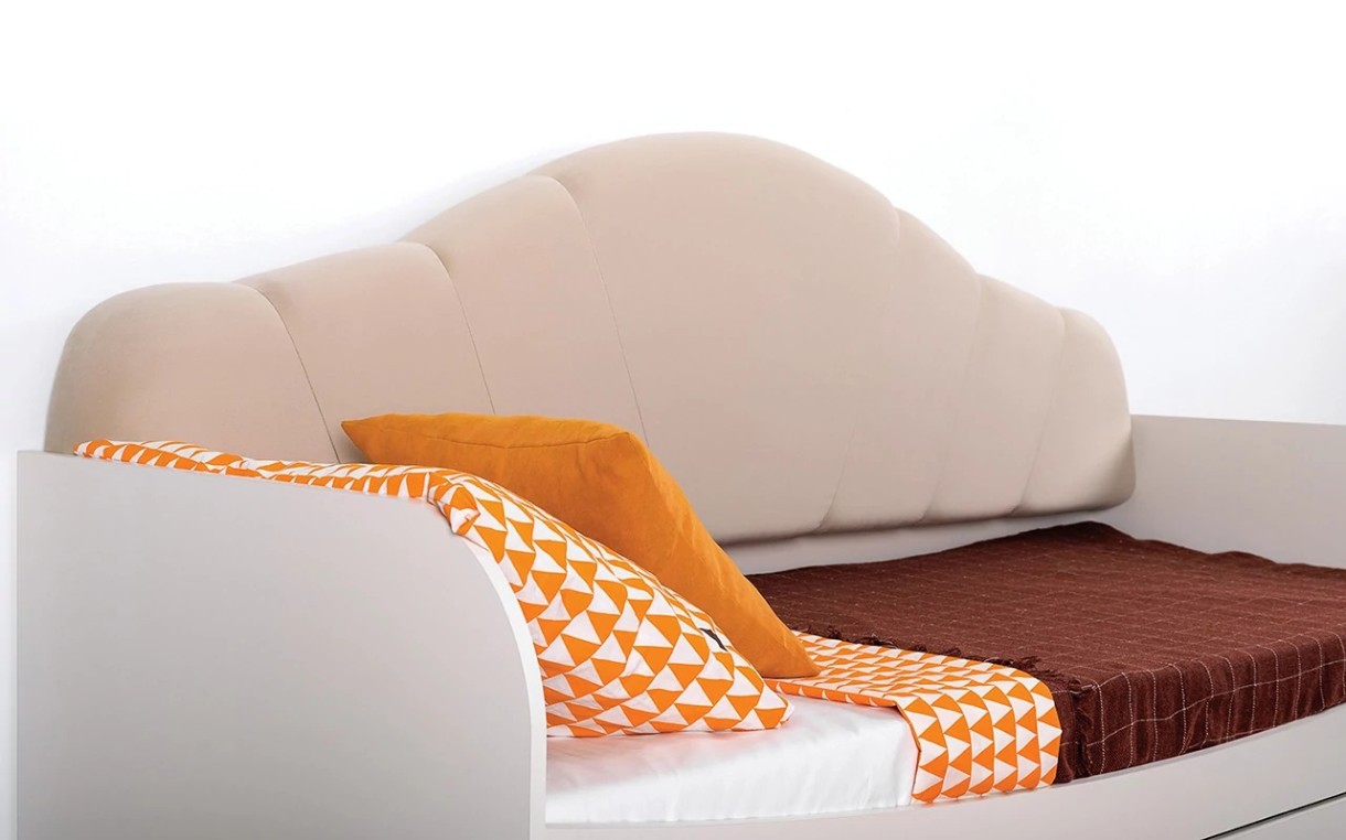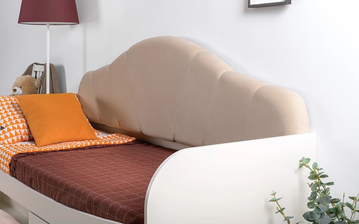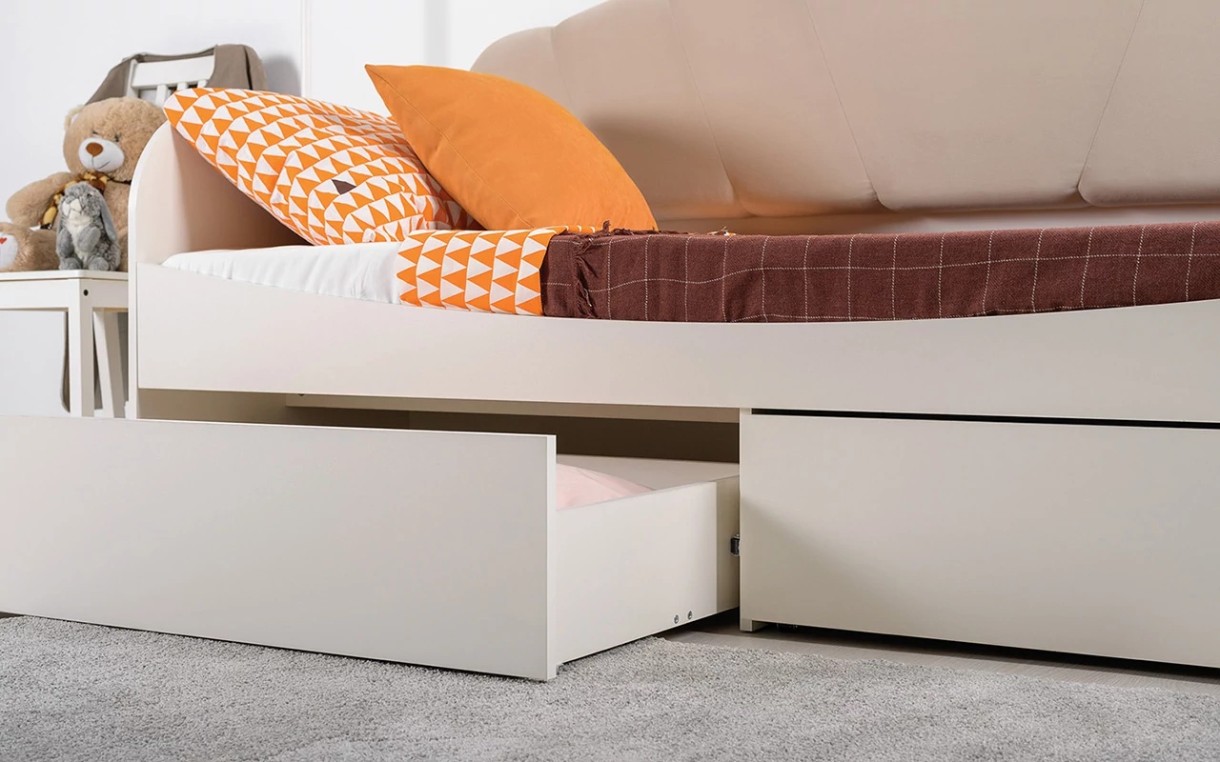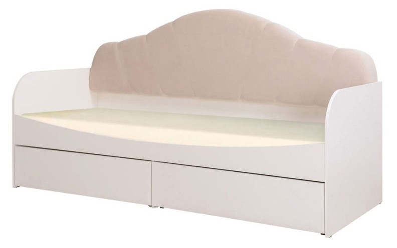 Кровать Шелл, представленная в бело-бежевой цветовой гамме, несомненно понравится вашему ребенку. Эта модель имеет предусмотрительно скругленные боковины, а мягкая спинка – обита велюром. Два вместительных выкатных ящика могут использоваться для хранения детских вещей и игрушек.