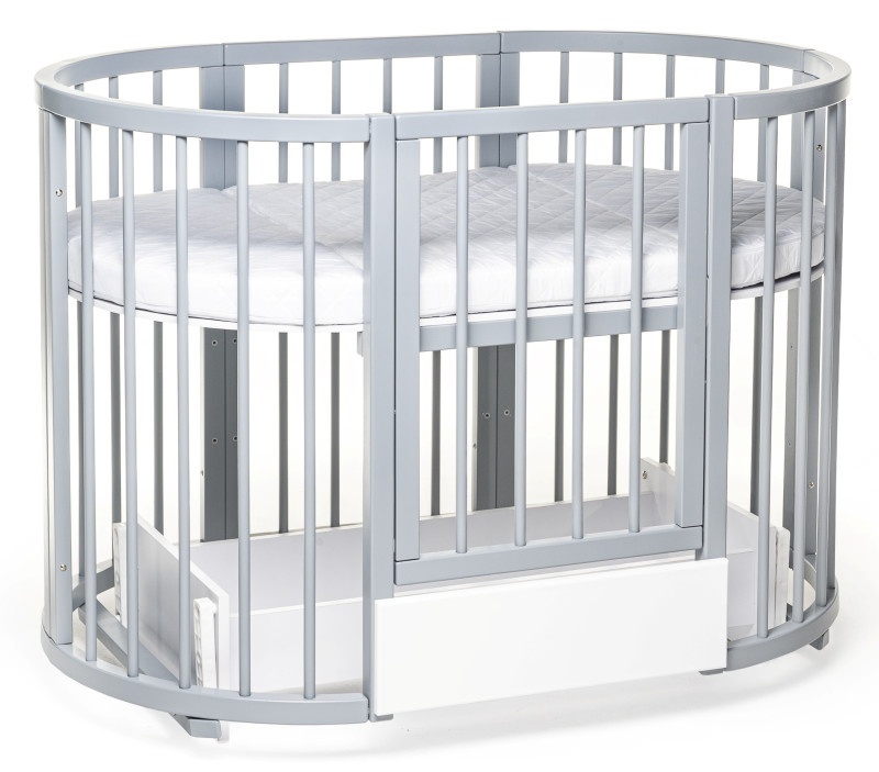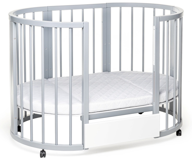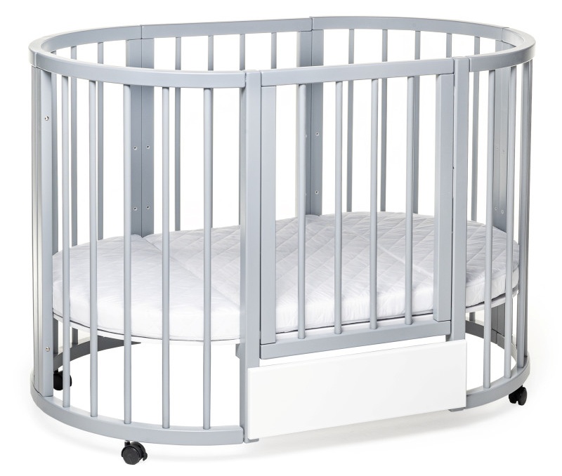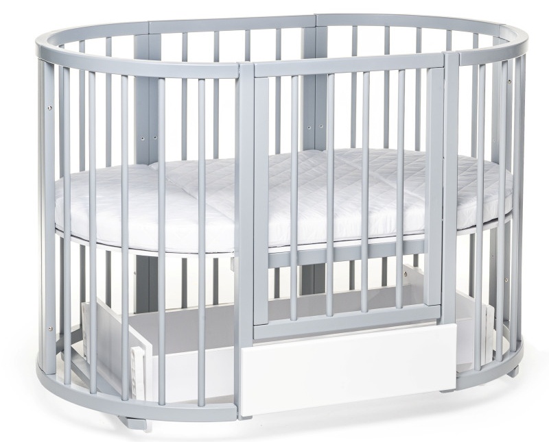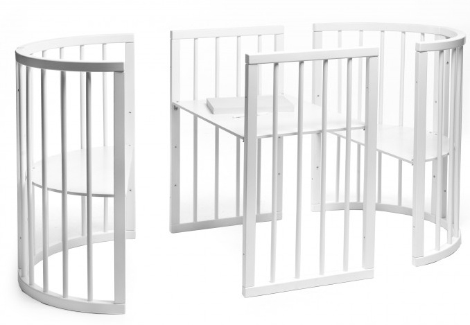Закругленные края деталей не позволят Вашему малышу удариться. Регулировка высоты позволяет подстроить кроватку под потребности ребенка и родителей. Овальная кровать трансформер позволит Вам также сэкономить на покупке отдельной мебели.