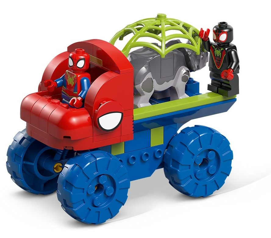 В этот игровой набор LEGO® входят минифигурки Спайди и Майлза "Спина" Моралеса, а также 2 фигурки динозавров: Паук-призрак в виде птеродактиля и Носорог в виде трицератопса. Здесь есть гусеничный грузовик LEGO Dino от Spidey с большой паутиной, прикрепленной сзади, функцией камнепада, которая приводится в действие спусковым механизмом, яйцом динозавра, которое можно достать, и паутиной, которую можно опустить, чтобы поймать злодея. Интуитивно понятные инструкции представлены в виде красочного руководства с картинками и рассказами, а в отдельных пакетах находятся кирпичи и большой стартовый набор для быстрого и легкого строительства.