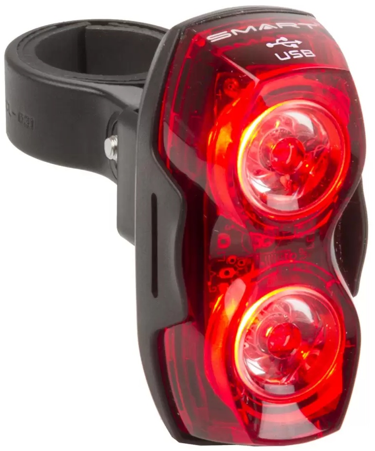 Аккумуляторный фонарь SMART Two Eyes USB оснащён двумя красными светодиодами мощностью 0,5 Вт, обеспечивающими отличную видимость даже в тёмное время суток. Встроенный литий-ионный аккумулятор легко заряжается через USB с помощью прилагаемого кабеля, а индикатор уровня заряда позволяет контролировать состояние батареи. Фонарь поддерживает четыре режима работы, включая различные уровни яркости и мигания, чтобы выбрать оптимальный вариант освещения. Универсальное крепление позволяет установить его на подседельный штырь, задние перья велосипеда или использовать клипсу для фиксации на рюкзаке. Влагозащищённый корпус делает устройство надёжным и пригодным для использования в любых погодных условиях.