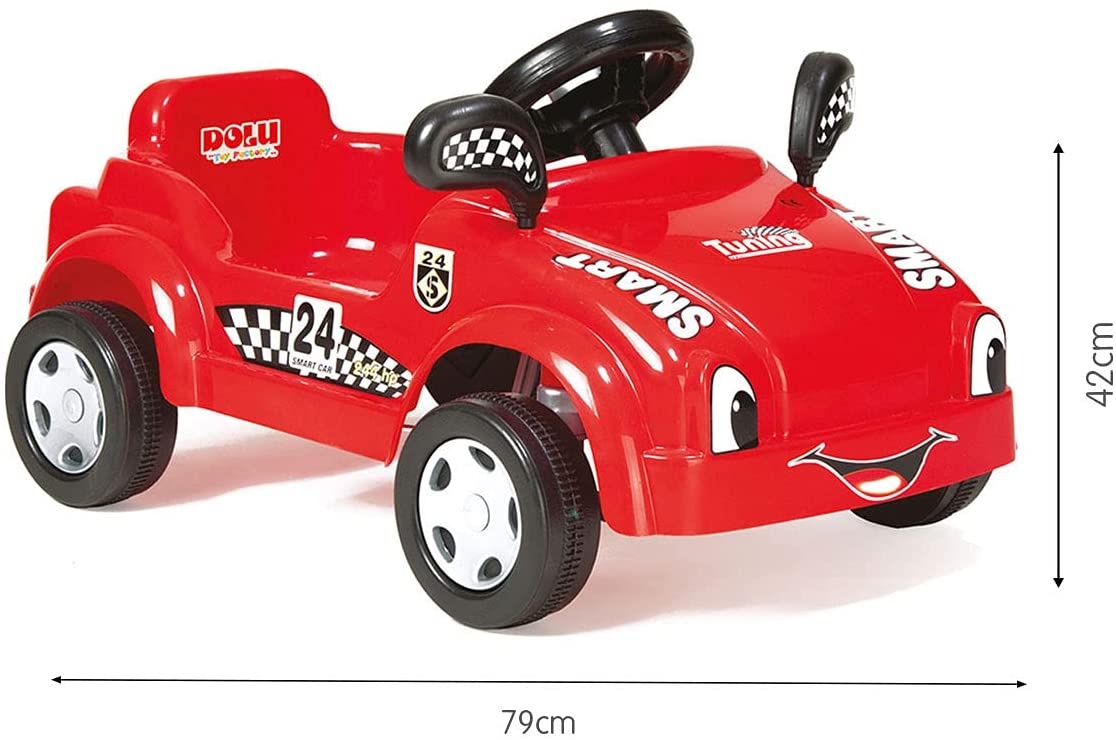 Чтобы катание на машинке было комфортным для малыша, изделие дополнено удобным сиденьем с высокой спинкой. Корпус автомобиля дополнен красочными декоративными наклейками, имитирующими забавную улыбающуюся мордашку. Для управления машинкой крохе достаточно вращать в нужную сторону руль, а боковые зеркала помогут гонщику ориентироваться на дороге.