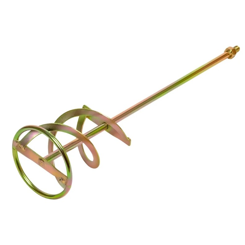 Насадка для смесителя (миксера) BIHUI подходит для раствора, плиточного клея, штукатурки, стяжки и шпаклевки. Идеально подходит для быстрого смешивания всех видов материалов, от краски до цемента. Венчик стальной, покрытый золотым цинком.