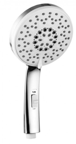 Rubineta 622031 - лейка душевая большого размера с отдельным ползунковым переключателем приостановки потока. Традиционный регулятор режима подачи потока на основе флажка в распылительной части лейки.