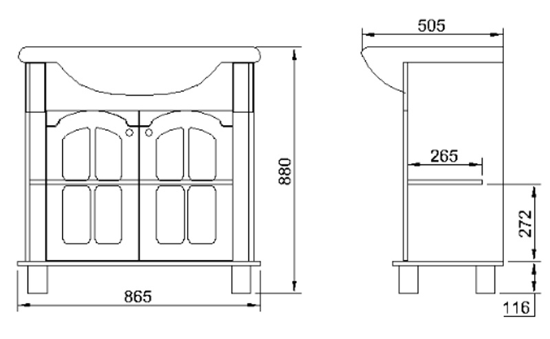 Тумба под раковину 850 Версаль КМК 0454.1 поможет упорядочить все необходимые вещи, а также привнесет в интерьер некую изюминку. Изделие за двумя распашными дверьми скрывает вместительное пространство, где вы сможете сложить порошки, шампуни и прочие средства, не заняв при этом много пространства. Такая тумба поможет со вкусом обустроить аристократическую и по-настоящему роскошную ванную комнату.