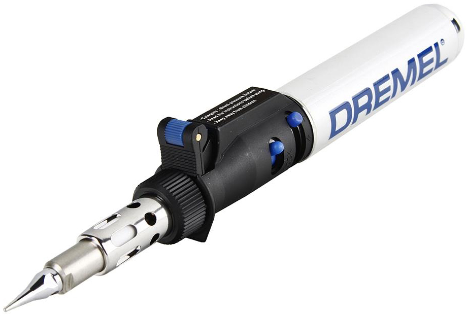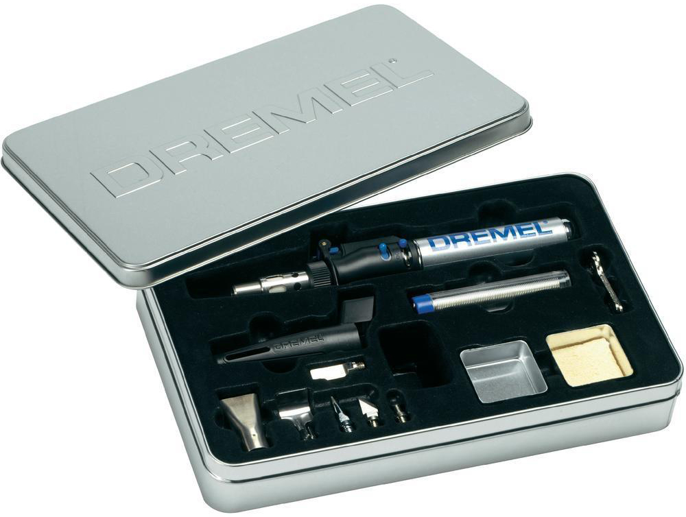 В набор дополнительных аксессуаров для газового паяльника Dremel 2000JA входят четыре вида насадок — паяльная, с голубым остриём, плоская и широкая для нагревания, отдельная трубка для подачи горячего воздуха. Кроме этого, прилагается два ножа — обычный режущий и для горячей резки, а также отражатель и губка. Весь комплект уложен в специальный фирменный чемоданчик для удобства хранения и переноски прибора весом 130 г.