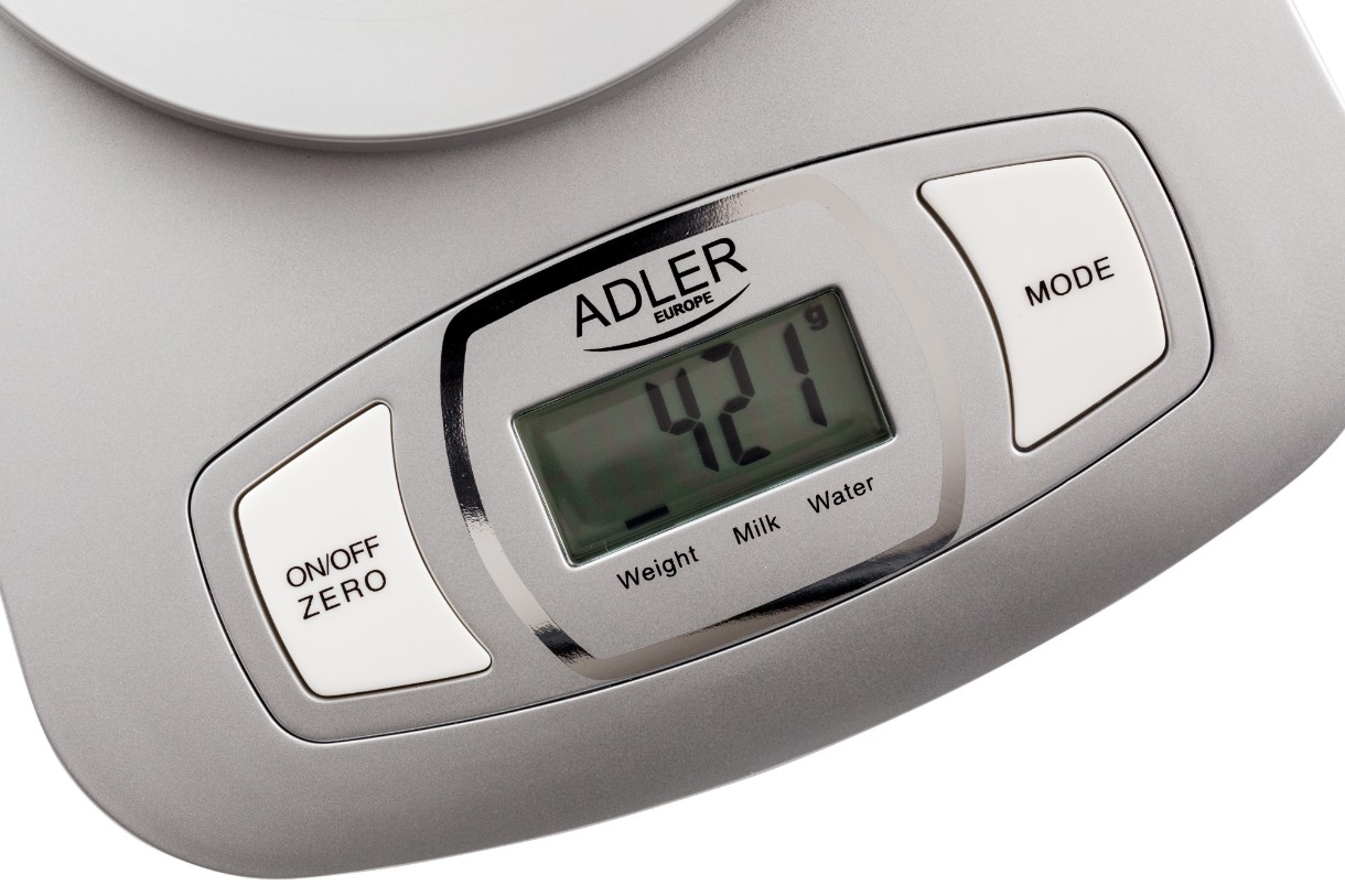 Электронные кухонные весы ADLER, служащие для взвешивания ингредиентов при приготовлении пищи — весьма нужная вещь. И также весы являются главным прибором для тех, кто внимательно следит за фигурой, так как соблюдая диету, нужно правильно и взвешенно питаться. Благодаря удобной пластиковой съемной чаше, в которой можно разместить не только сыпучие продукты, но и многое другое, вы сможете с точностью до 1 грамма правильно рассчитать вес каждого продукта без учета тары, который высвечивается на большом ЖК-дисплее.