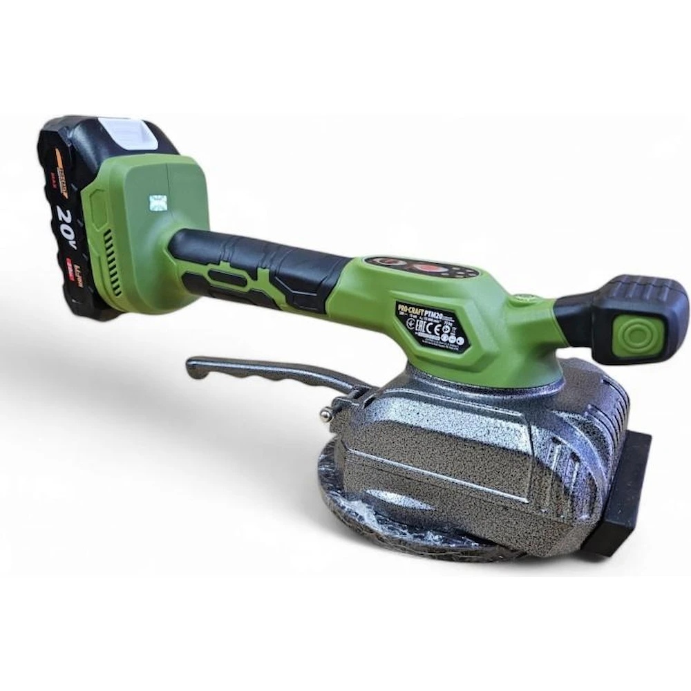 Procraft PTM20 — это профессиональная аккумуляторная виброприсоска, предназначенная для быстрой и качественной укладки керамической плитки и керамогранита. Инструмент совмещает функции вакуумного захвата для переноски и вибрации для равномерного распределения клея и удаления воздушных пустот.