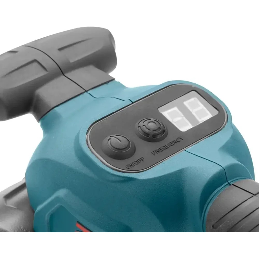 Модель работает от Li-ion аккумулятора 20 V и 2000 mAh, оснащена brushed-мотором, имеет 6 уровней вибрации, частоту холостого хода 4500–8150 /min и присоску 130 мм. Головка выполнена из алюминия, площадка — из резины, а вес с 1 аккумулятором составляет 1.8 kg. В комплект входят 2 аккумулятора и 1 зарядное устройство, а кейс BMC делает хранение и транспортировку более удобными.