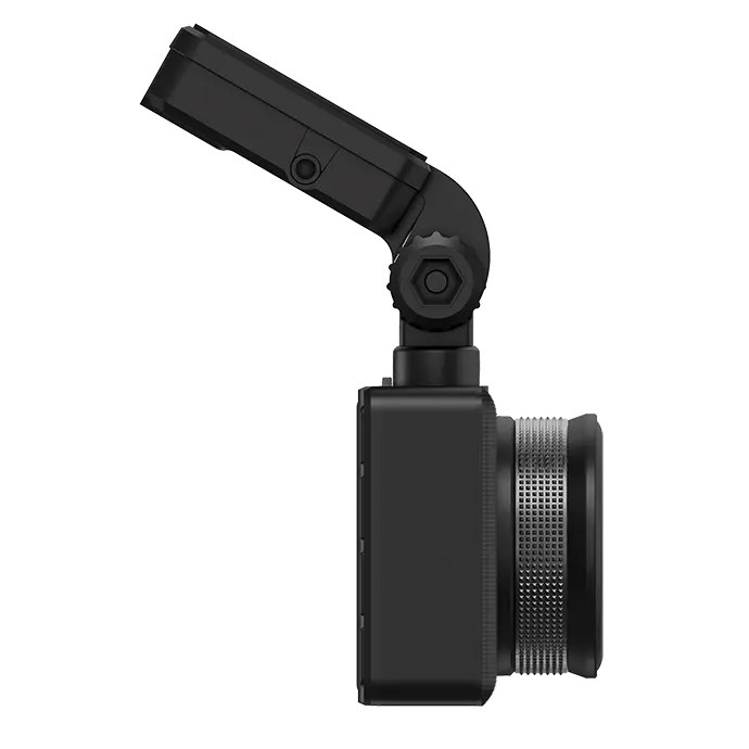 Достаточно поднести устройство к держателю, и сильный магнит надежно зафиксирует его на месте. Видеорегистратор абсолютно свободен от проводов, так как зарядное устройство подключается к кронштейну-держателю.