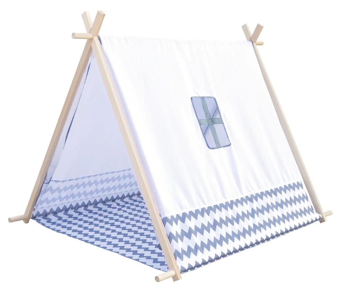 Детская палатка для игр. Она включает в себя окно, открытую дверь и пол. Брезент дома изготовлен из 100% полиэстера, а конструкция из дерева. Палатка приносит в жизнь детей много веселья, исследования и создания тайников в собственной «пещере». Изделие может быть размещено как в детской комнате, так и в саду, и предлагает много места. Её можно разобрать за несколько минут. Палаточный домик - отличный подарок для маленьких искателей приключений. Подходит для детей от 3 лет. Предупреждение! Использование детьми в возрасте до 3 лет только под наблюдением взрослых.