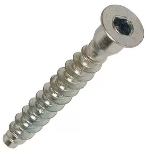 Винт-конфирмат с внутренним шестигранником, оцинкованный, является высокопрочным крепежным элементом для соединения деталей мебели и других конструкций из древесины и древесных материалов. Оцинкованное покрытие обеспечивает отличную защиту от коррозии, увеличивая срок службы изделия. Внутренний шестигранник позволяет надежно затягивать винт, обеспечивая прочное и долговечное соединение.