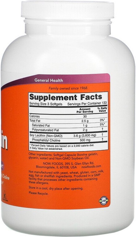 Лецитин — это незаменимая аминокислота, которая является строительным материалом для клеточных оболочек нашего организма. Он укрепляет нервную систему, поддерживает здоровье печени, головного мозга и сердечно-сосудистой системы. Диетическая добавка «Лецитин» от американского производителя натуральных БАД-ов Now Foods поможет нормализовать липидный обмен в организме, уровень холестерина в крови, улучшить функциональность печени, повысить физическую и умственную работоспособность.
