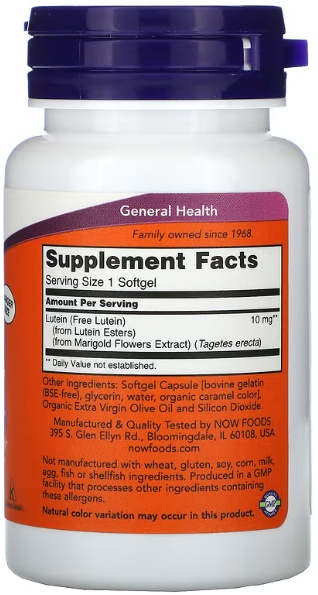 Описание Пищевая добавка NOW Lutein 10mg 60cap