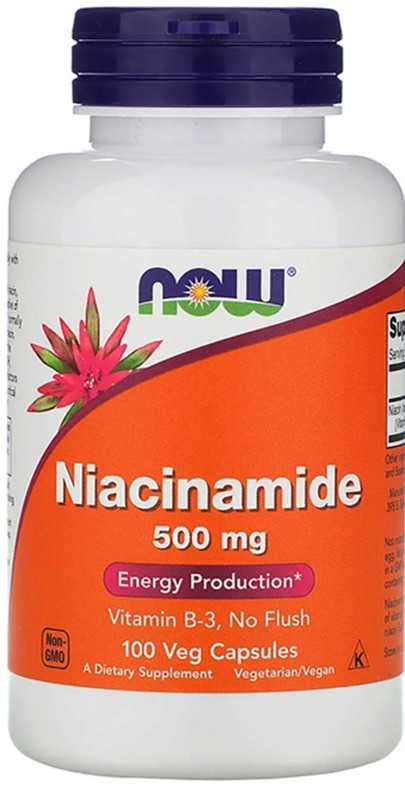 Ниацинамид (Niacinamide, никотиновая кислота или витамин B-3) — это водорастворимый витамин. Ниацинамид и ниацин две различные формы витамина B-3, форма Ниацинамид, не вызывает приливов. Потребление высоких доз ниацина обычно приводит к так называемым приливам (жар, покраснение кожи, прилив крови к голове), но ниацинамид является предшественников ниацина и не вызывает жара. Ниацинамид помогает производству энергии клеток и поддержке ДНК. Нехватка витамина B-3 может вызывать нарушения состояния организма различной формы.