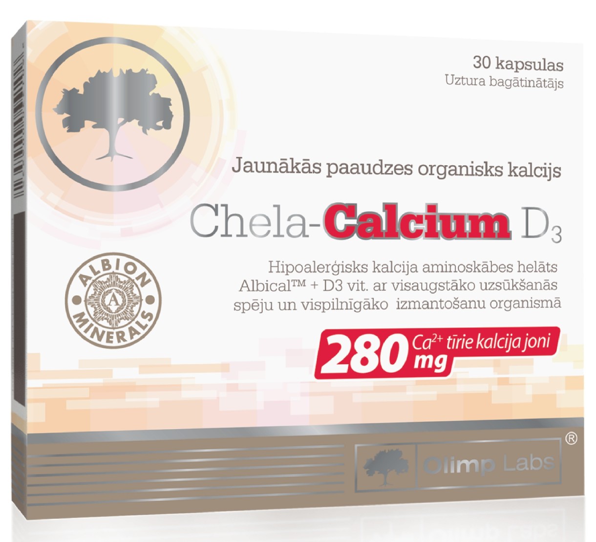 Формула органического кальция последнего поколения Chela-Calcium D3® содержит запатентованный гипоаллергенный хелат аминокислоты кальция Albical ™, обогащенный витамином D3, что обеспечивает значительно лучшее усвоение и использование в организме. Одна капсула содержит 280 мг чистых ионов кальция, обогащенных витамином D3.