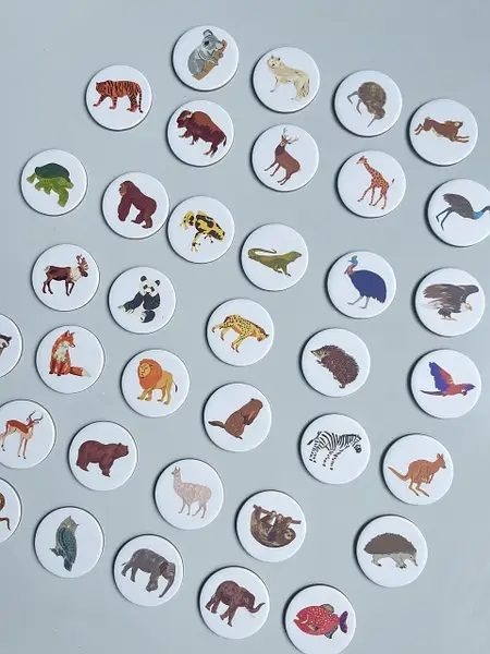 Комплектация6 круглых карточек континентов, 6 лотерейных полей, 42 круглых жетона животных, 1 тканевый мешочек
