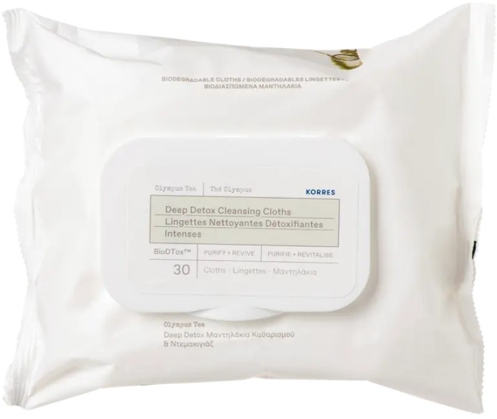 Очищающие салфетки Korres Olympus Tea Deep Detox - это готовые очищающие салфетки для лица и области вокруг глаз. Роскошные салфетки для глубокой очистки содержат детоксифицирующее железо и антиоксиданты BioDToxTM для защиты от загрязнения. Универсальная, мягкая и биоразлагаемая ткань эффективно и бережно удаляет загрязнения и макияж с лица и кожи вокруг глаз, делая кожу приятно мягкой. Подходит для всех типов кожи. Веганский. Протестировано дерматологами. Без парабенов, минерального масла, силикона, пропиленгликоля, этаноламинов, наночастиц.