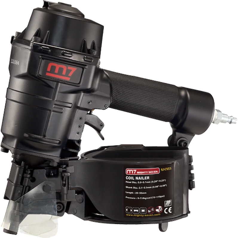 Mighty Seven под гвозди 25-57 мм SJ-CN55 – отличный аппарат для ускорения монтажа различного листового материала. Незаменим при выполнении обшивки каркасных домов или других строений.