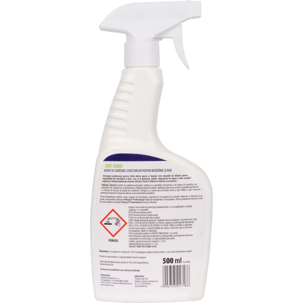 Очиститель затирки Primacol, 500 мл – специализированное средство для эффективного удаления остатков затирки и клея с различных твердых поверхностей.