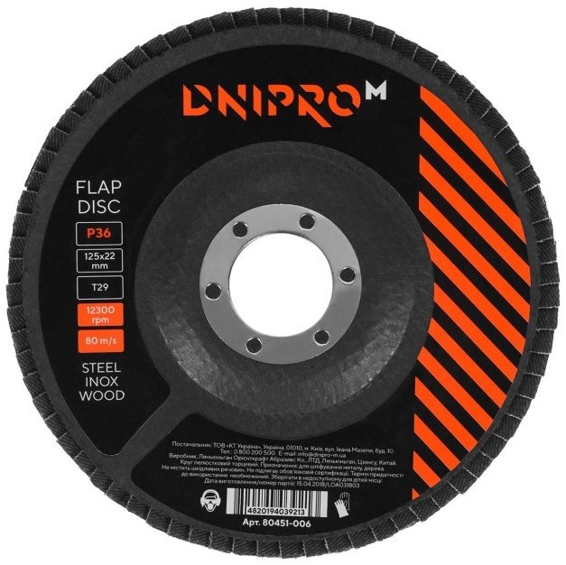 Характеристики Шлифовальный круг Dnipro-M Р36 125x22.2mm 5pcs