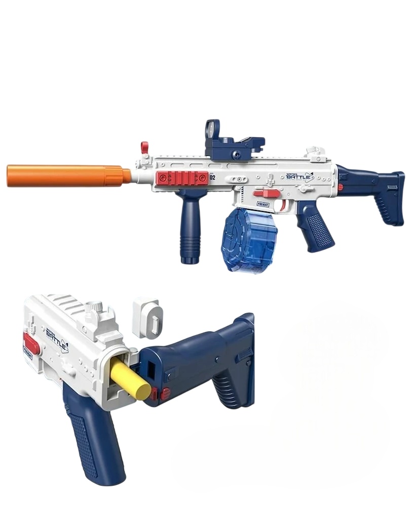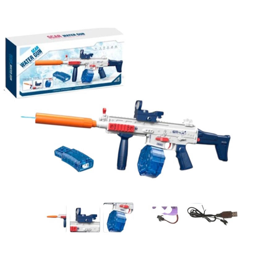 Водный пистолет-автомат SCAR (электрический, с аккумулятором) — увлекательная игрушка для детей и взрослых, идеально подходящая для активных игр на свежем воздухе.