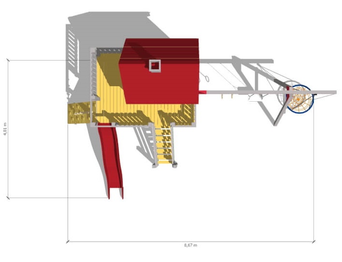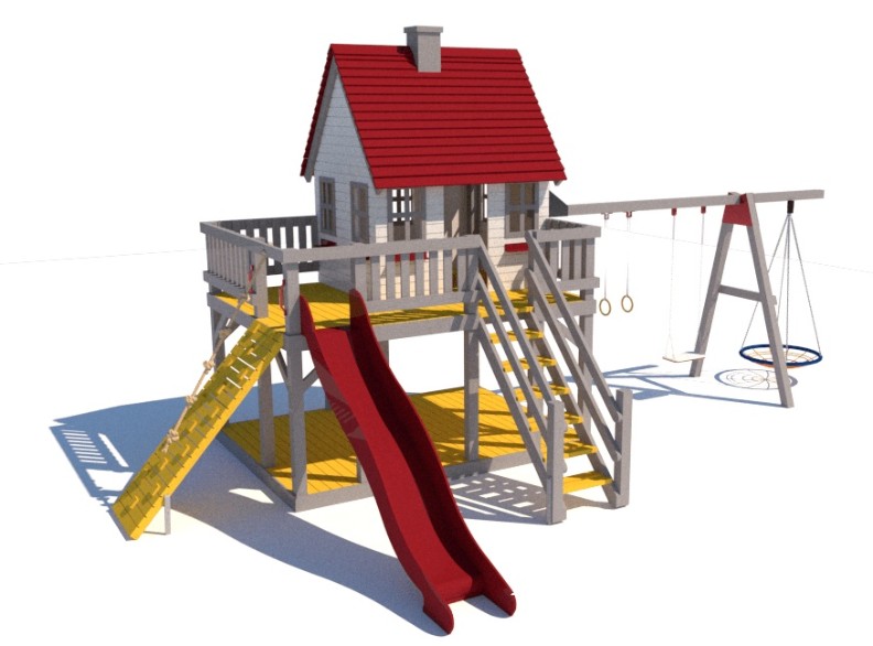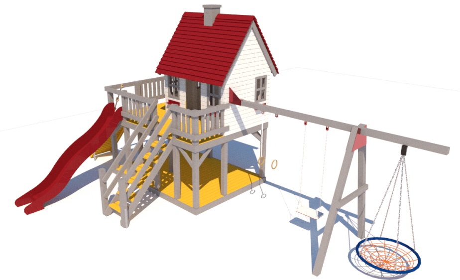 Комплектациягорка, качели, лестница, скалодром, дом, кольца