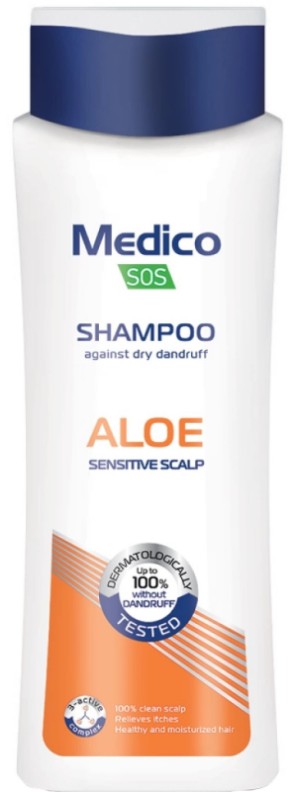 Шампунь Medico SOS Aloe для чувствительной кожи головы с эффектом против перхоти.