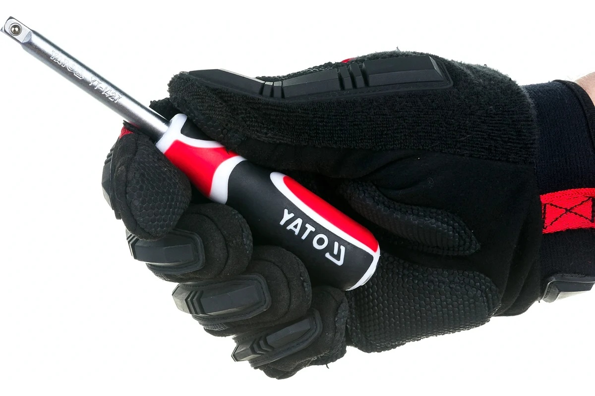 Вороток-отвёртка 1/4 дюйма YATO YT-1427 оснащается посадочным квадратом. Можно использовать инструмент для работы с шестигранным крепежом через торцевые головки или установить через переходник подходящую биту. Надежный и универсальный инструмент.