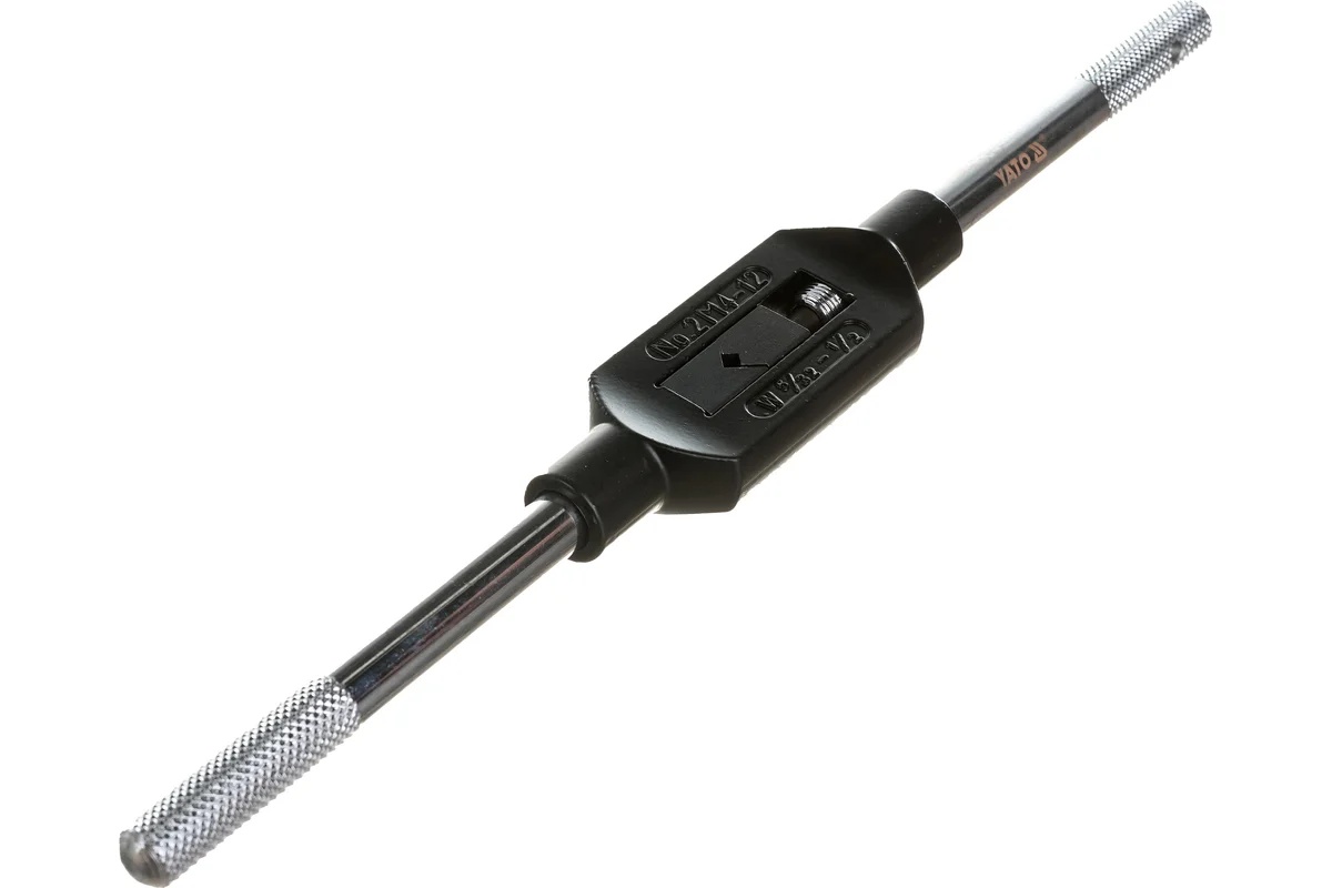 Вороток для метчиков M4-M12 YATO YT-2993 представляет собой удобный инструмент. При помощи вращающейся рукоятки можно закрепить метчик необходимого диаметра. Простая и эффективная конструкция обеспечивает точную настройку и быстрое нарезания резьбы.