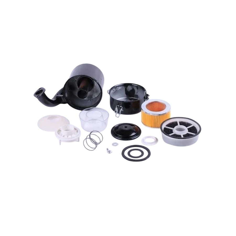 • Верхний воздухозаборник. Устанавливается на руле мотоблока или иной мототехники, максимально далеко от колес и прочих движущихся частей, являющихся основными источниками пыли и грязи. Состоит из корпуса с хомутами крепления на круглую опору и внутреннего предварительного бумажного фильтра, предназначенного для фильтрации крупного мусора.
