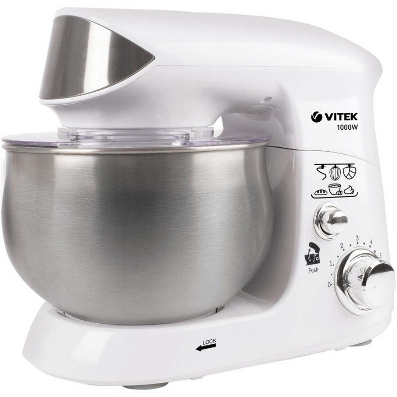 Для всех влюбленных в кулинарию была создана кухонная машина VITEK VT-1444 с максимальной мощностью 1000 Вт, имеющая шесть скоростных режимов! С помощью этого устройства вы сможете не только смешать большое количество продуктов (объем стальной чаши — 3,5 л), но и вымесить тесто или взбить крем. Планетарное вращение насадок обеспечивает обработку всего объема емкости, что гарантирует безупречный конечный результат. А если в процессе вам потребуется добавить ингредиенты — воспользуйтесь специальным окном в прозрачной крышке чаши. В комплект с кухонной машиной входит лопатка для перемешивания ингредиентов.