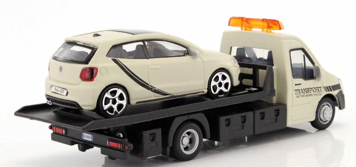 Автомобили всегда привлекают мальчиков, они готовы играть днями напролет с моделями и каждый раз придумывать невероятно захватывающие сюжеты. С моделью “Автоперевозчик и автомобиль VW Polo GTI Mark 5” (18-31403) от компании BBURAGO ребята смогут почувствовать себя настоящими мастерами своего дела. Перевозя на прицепе небольшой бежевый Volkswagen, дети будут развивать мелкую моторику, аккуратность и ловкость. Автомобиль оснащен специальным платформой, которая опускается, и маленькие машинки с легкостью могут на нее заехать. Модель сделана с очень высокой детализацией и станет одной из любимых игрушек мальчика.