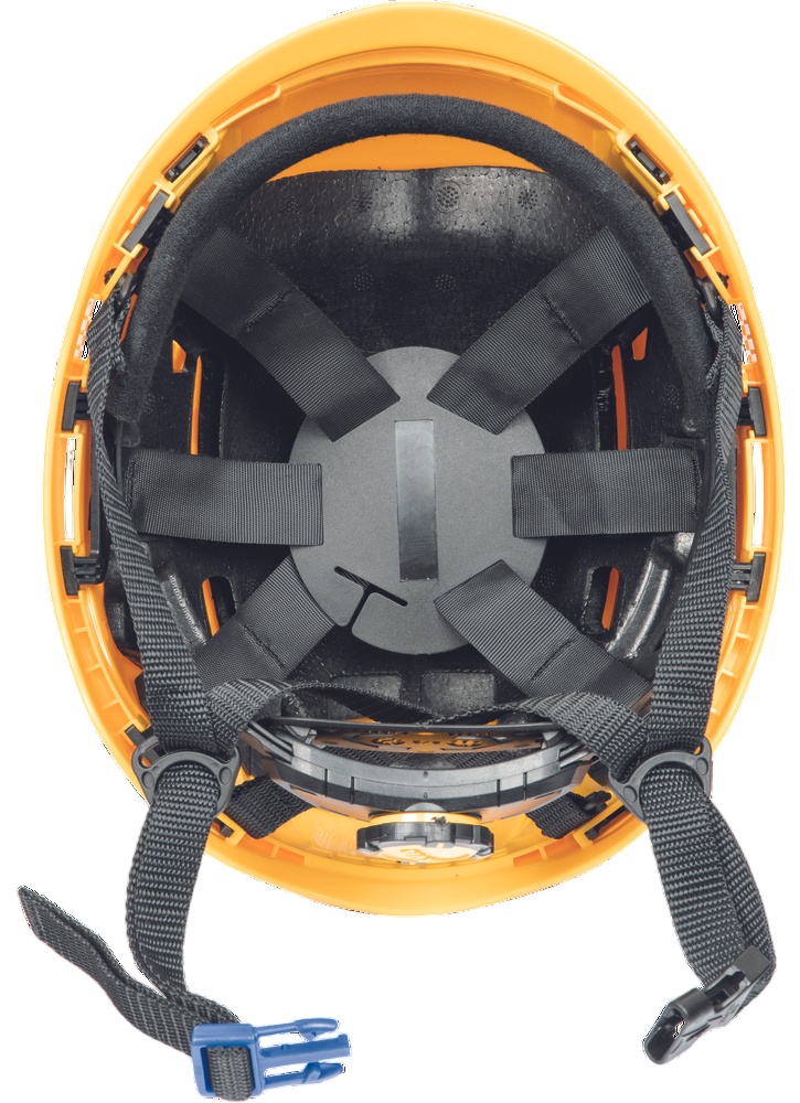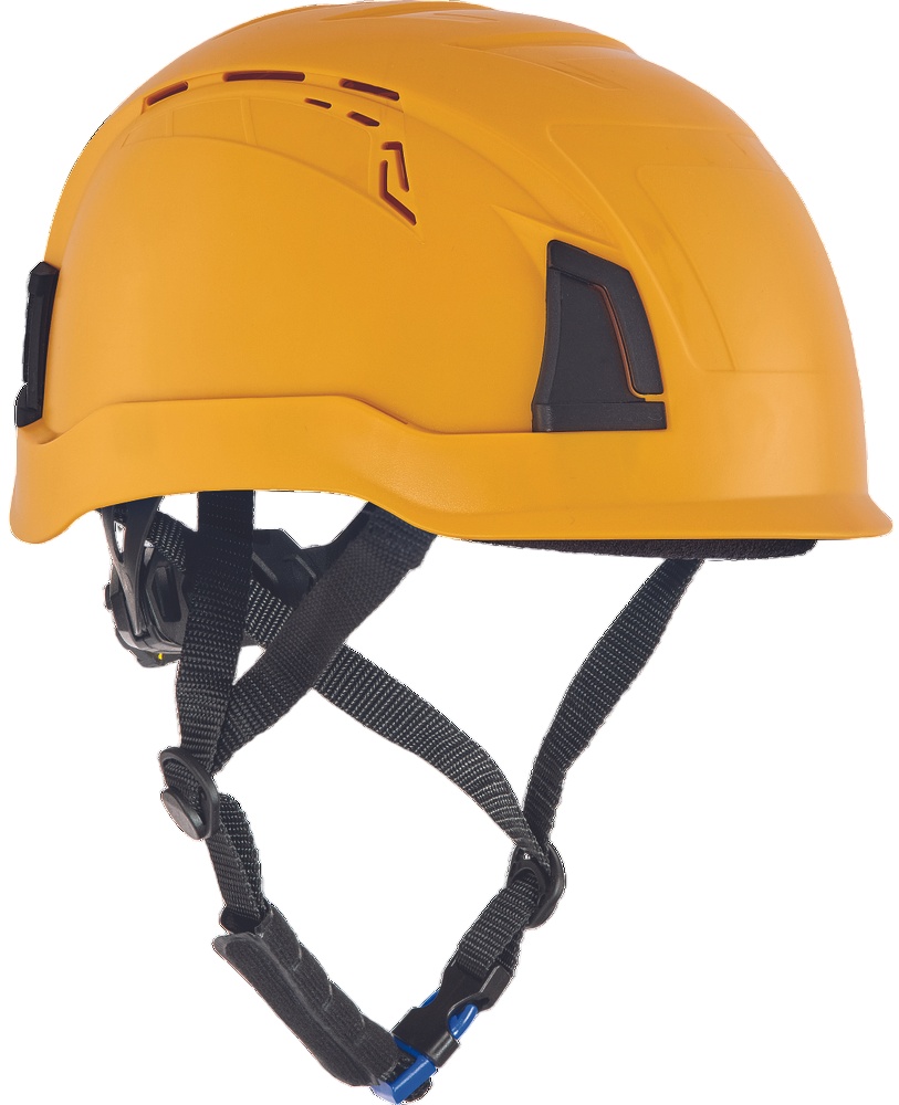 Защитная каска для работы на высоте изготовлена из прочного и легкого материала ABS, обеспечивающего надежную защиту головы при минимальном весе. Каска соответствует стандарту EN 12492, который регламентирует требования к альпинистским и промышленным защитным шлемам, предназначенным для использования при работах на высоте и в сложных условиях. Вес каски составляет 470 г, что делает её удобной для длительного ношения. Конструкция с шеститочечной внутренней подвеской гарантирует устойчивую фиксацию и равномерное распределение нагрузки. Регулировка размера осуществляется при помощи удобного колесика, позволяя точно подогнать каску под обхват головы от 53 до 66 см. Встроенные вентиляционные отверстия обеспечивают оптимальную циркуляцию воздуха, поддерживая комфорт даже при интенсивной работе. Модель оснащена сменной внутренней подвеской, интегрированными потоотводящей лентой и затылочным ремнем, а также имеет специальные слоты для крепления противошумных наушников. Диапазон рабочих температур от -30 °C до +50 °C делает эту каску универсальным средством защиты для любых климатических условий.