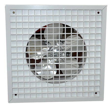Вентилятор устанавливается на поверхность стены при помощи квадратной присоединительной пластины.