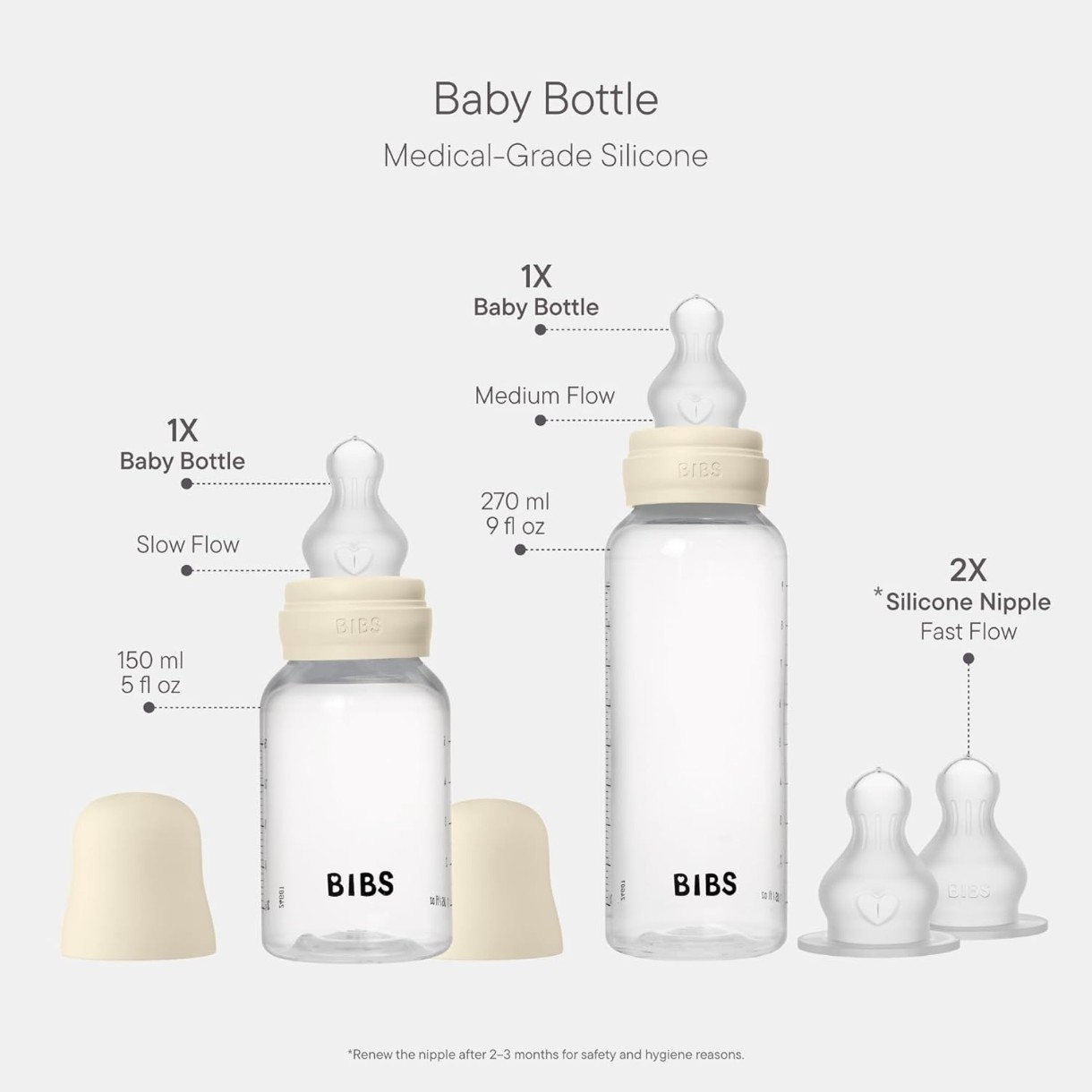 Бутылочки для кормления BIBS Grow and Flow set Silicone Ivory 150ml/270ml (50181216)