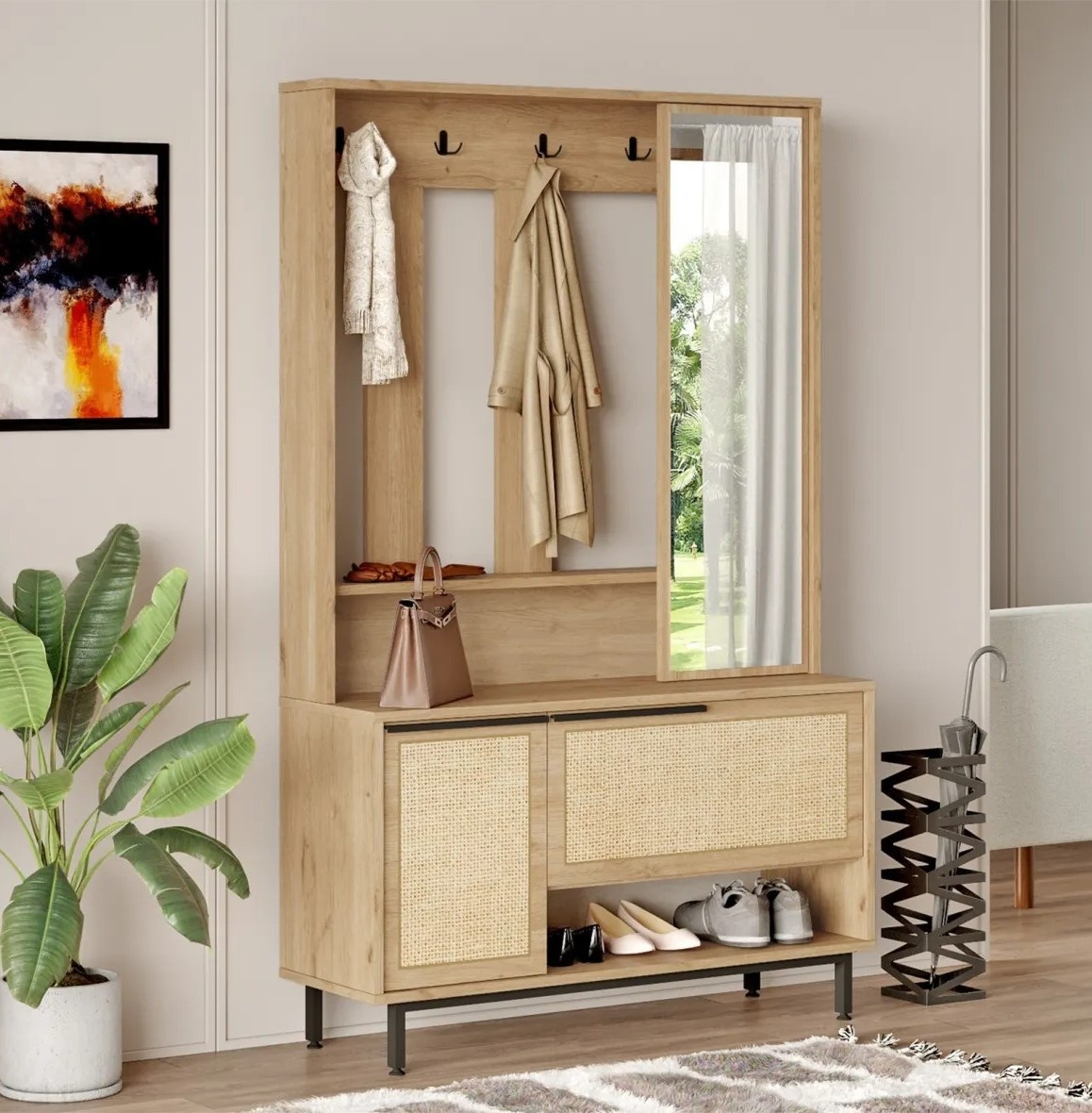 Представляем изящный стенд для холла — аксессуар, который моментально улучшит внешний вид вашей прихожей. Созданный с вниманием к деталям, он помогает сформировать приятное и запоминающееся впечатление у каждого, кто входит в дом.