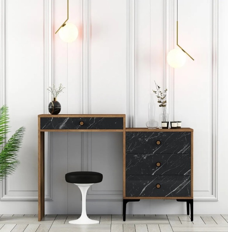 Туалетный столик Trendy Lizbon 555 Walnut/Black Marble 124x84x40cm GTR001464