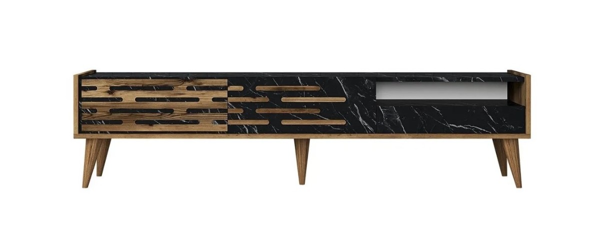 Тумба под ТВ Trendy Valensiya Walnut/Black Marble 180x45x35cm GTR000130
