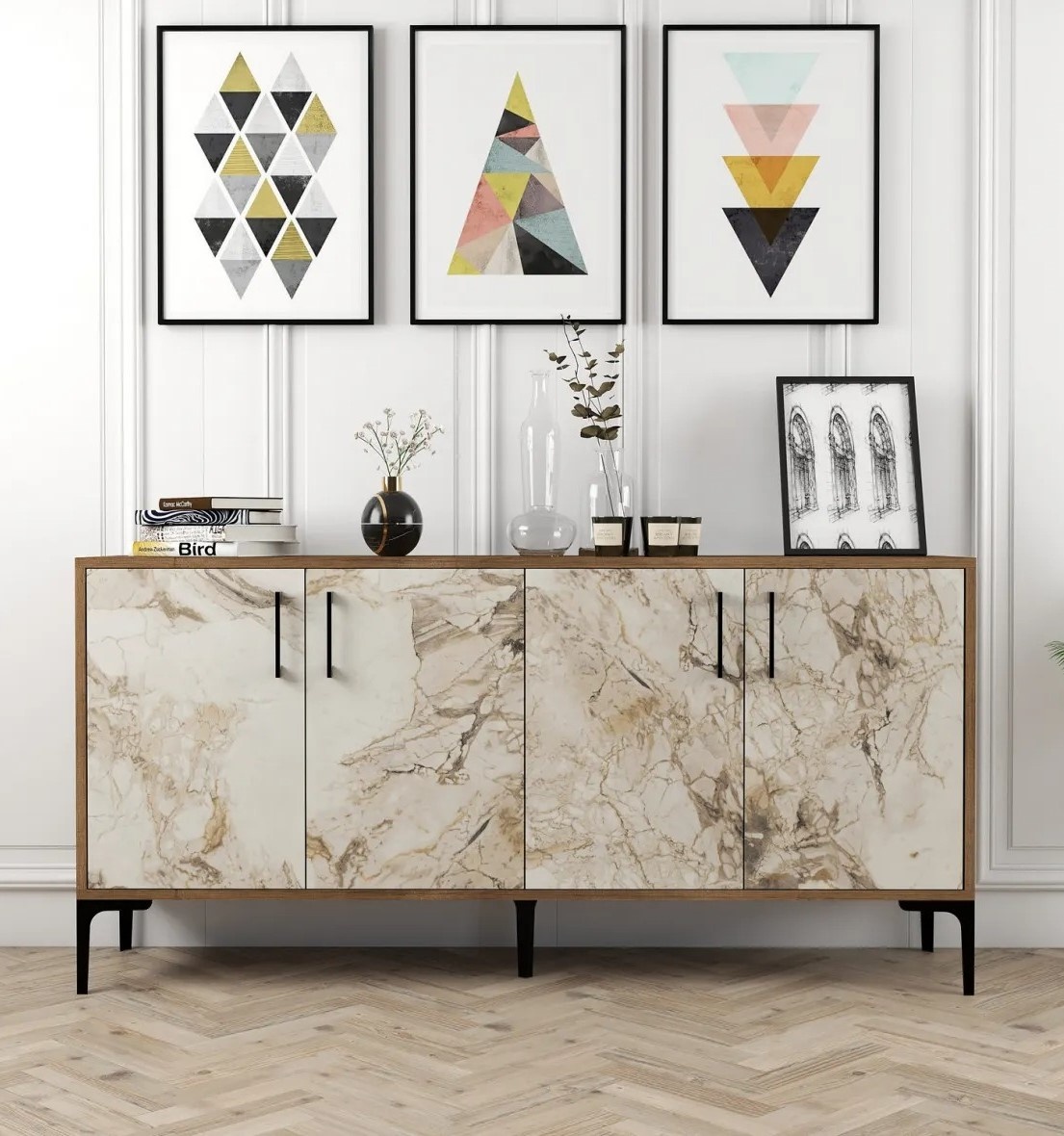Тумба Trendy Kiev 160 Walnut/White Marble 160x78x35cm GTR001158
