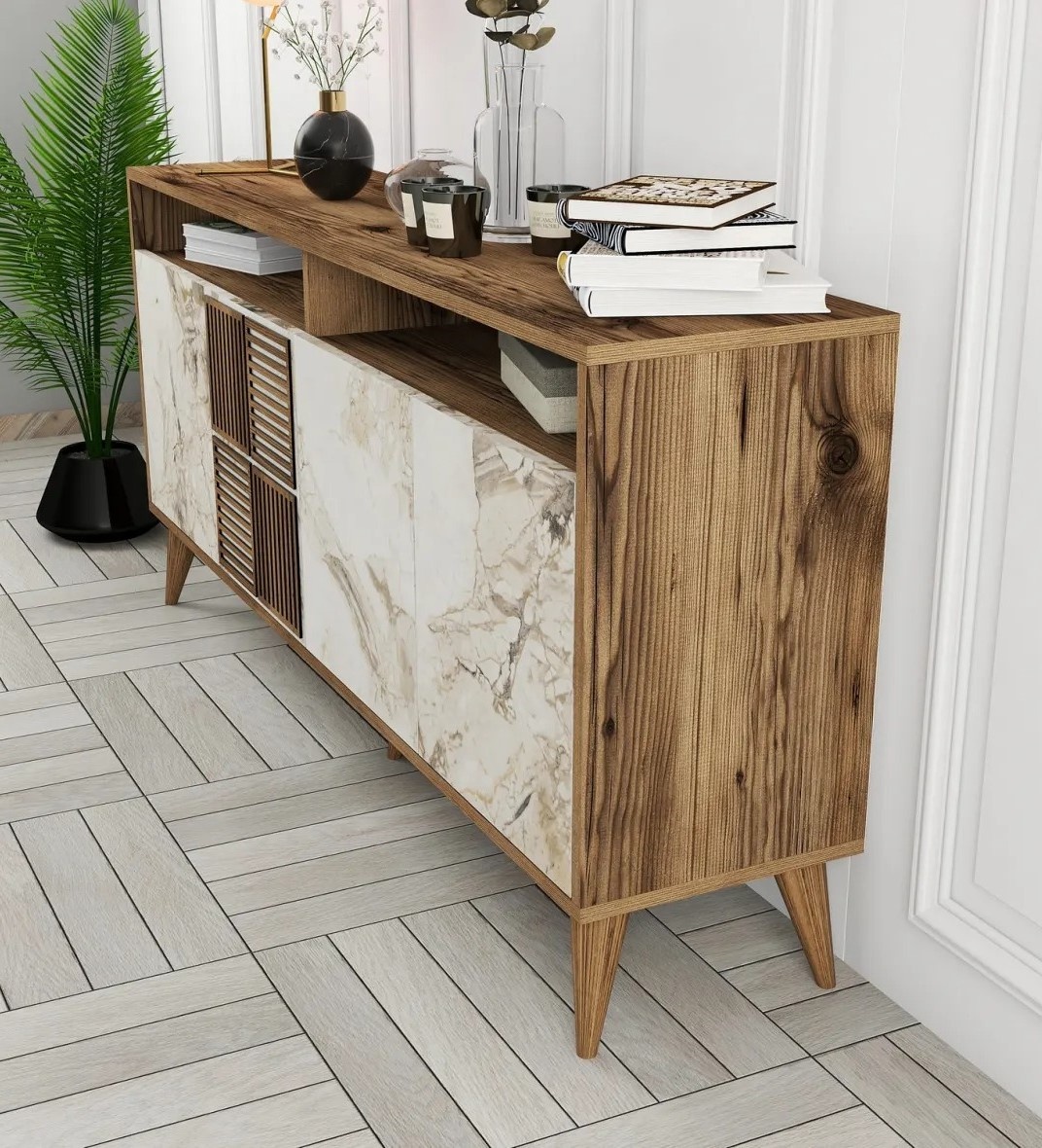 Оцените новизну нашей современной консоли, созданной для того, чтобы подчеркнуть ваше жилое пространство своим актуальным стилем. Чистые линии и минималистичный дизайн формируют выразительный визуальный образ, который наверняка произведёт впечатление на ваших гостей.
