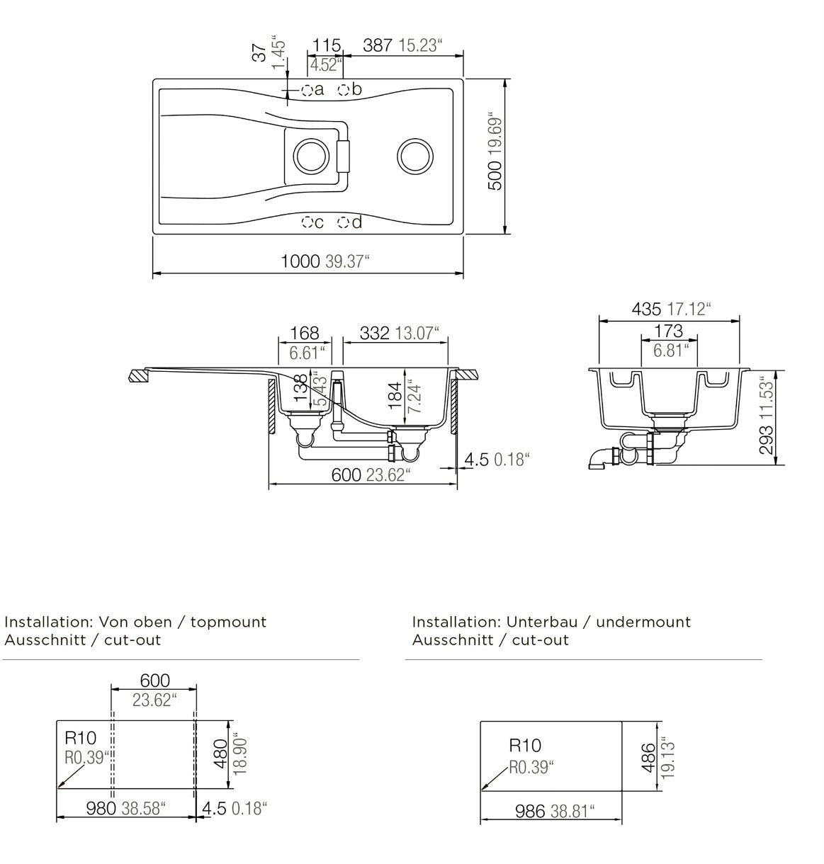 Размер мойки1000х500 мм