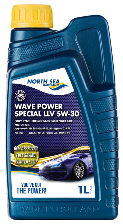 WAVE POWER SPECIAL LLV 5W-30 это 100% синтетическое, высокоэффективное, экономящее топливо масло с большим сроком службы и пониженным содержанием сульфатной зольности, фосфора и серы (MID SAPS). Оно предназначено для бензиновых и дизельных двигателей легковых и легких грузопассажирских автомобилей, для которых предписан стандарт VAG 504.00/507.00. Это масло также подходит для транспортных средств, требующих допуска MB 229.51 и BMW LL-04. Также подходит для автомобилей, где изначально требовался VW 506.01.