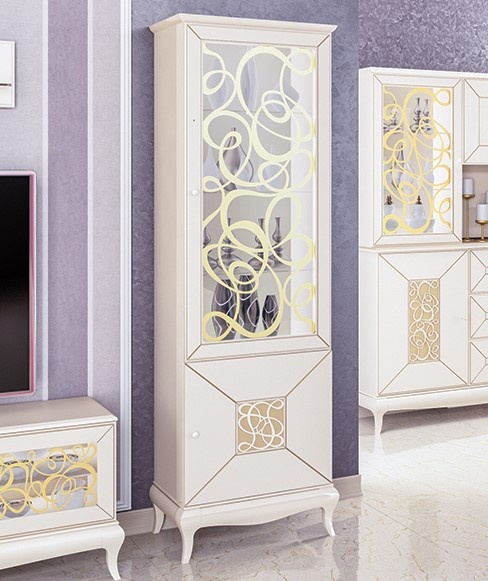 Витрина Гармония — это функциональный предмет мебели, в котором хранятся различные вещи. Кремовый цвет с патиной под золото добавляют дополнительную роскошь внешнему виду витрины. Данная модель отличается легкостью, прозрачностью и воздушностью. Придает изюминку интерьеру.