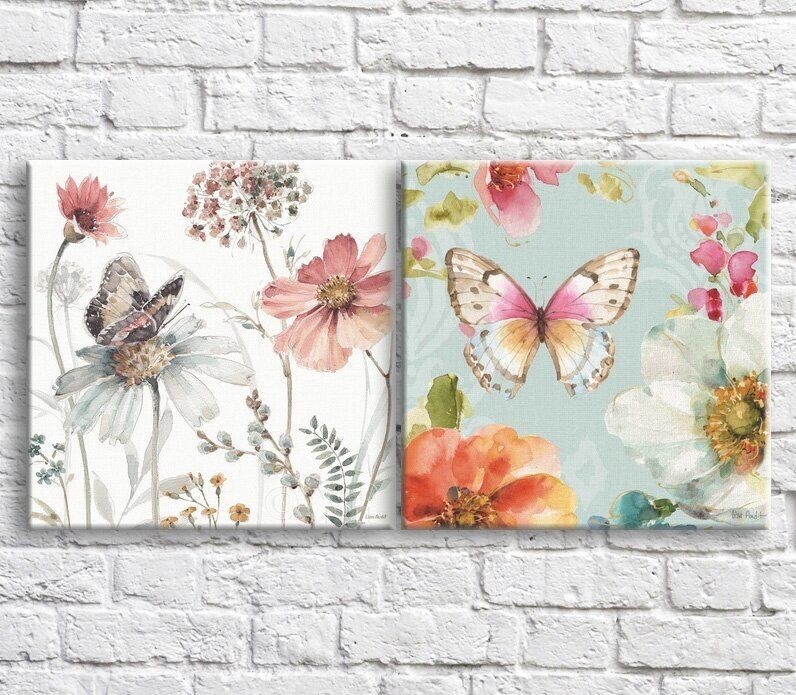 Картина ArtPoster Multicolored butterflies and flowers on White and Blue background (3467768)