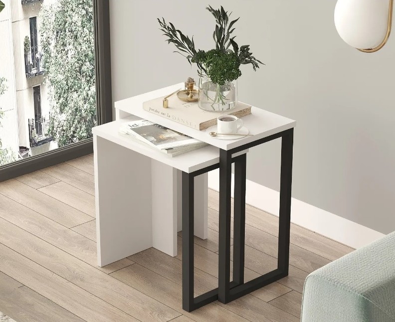Комплекты из двух столиков разного размера создают удобное решение для экономии места. Когда дополнительная поверхность не нужна, меньший столик легко помещается под большим, освобождая пространство.